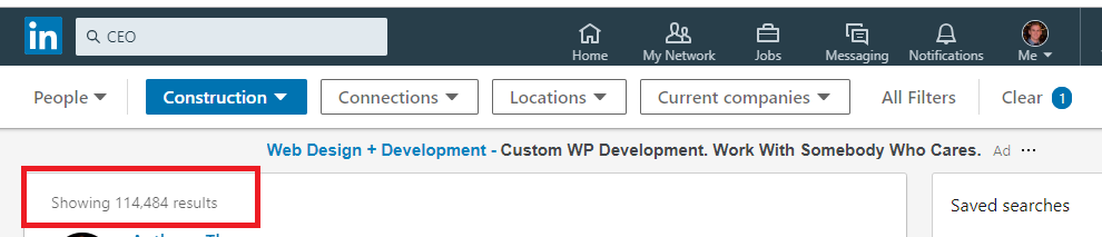 You’ll then get a snapshot of your audience on LinkedIn. The results could be staggering – below is over 114,000. That is a TON of prospects.